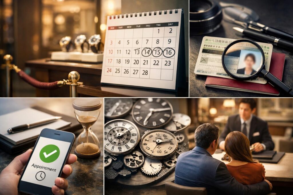 最近、ロレックス正規販売店への入店方法としてすっかりおなじみになった事前予約(来店予約)。とっても便利になった反面、「これってどうなってるの?」と気になる点もいくつかありますよね。ここでは、そんな事前予約に関するよくある疑問にお答えしていきます!