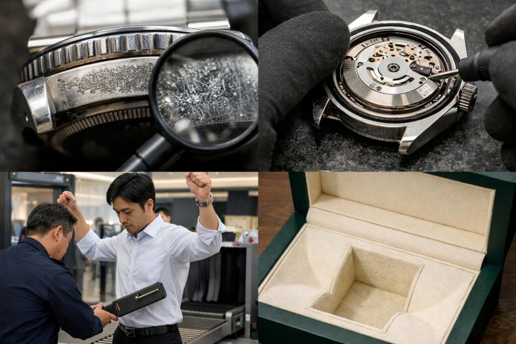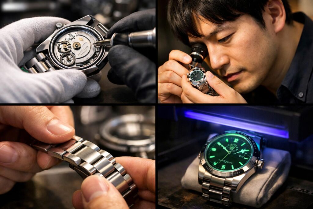 意外と知られていないのが、メーカーでの修理対応による影響です。もし、過去に落下事故などでケースに致命的なダメージがあり、日本ロレックスなどの正規サポートで「ケース交換」を行っていた場合、シリアルナンバーの扱いが変わることがあります。