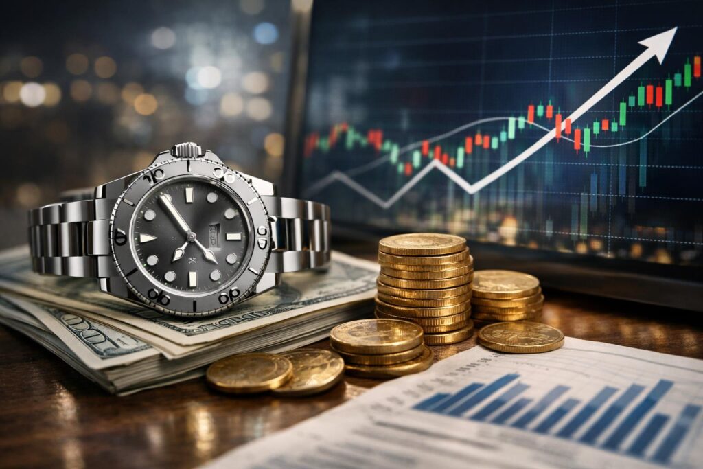 実際のグラフはお見せできませんが、ヨットマスターの人気モデルの価格は、ここ数年で大きく動いています。特にステンレスとプラチナを組み合わせたロレジウムモデル「Ref.126622」は、中古市場での価格が安定して上昇傾向にあります。